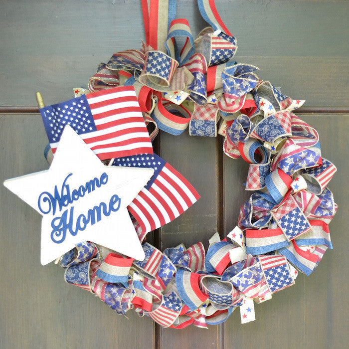 - 4 rolls of wired patriotic ribbon (3-4 yards of ribbon per roll)