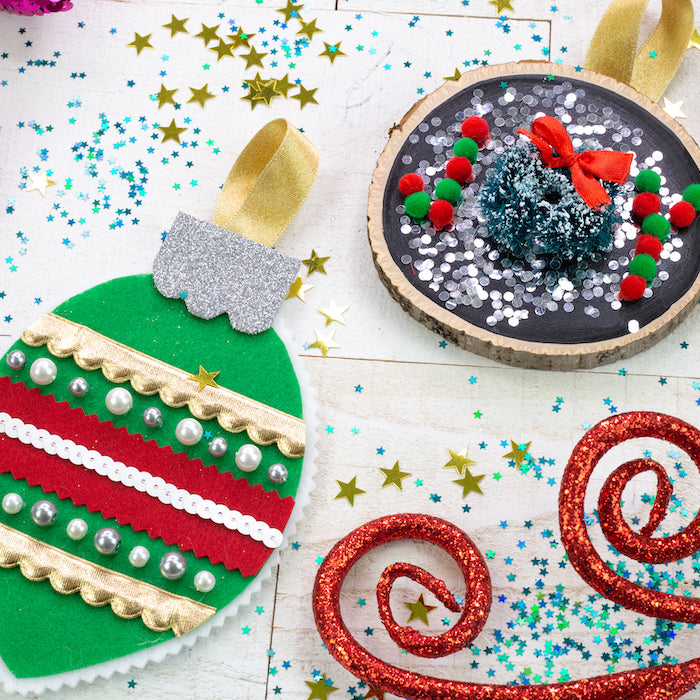 I love decorating my tree and making new ornaments for every week throughout the holidays! These three are some of my favorites! All are made easily using Beacon Adhesives Gem-Tac. There is just something about handmade ornaments on a Christmas tree that makes holiday spirit a little more special!