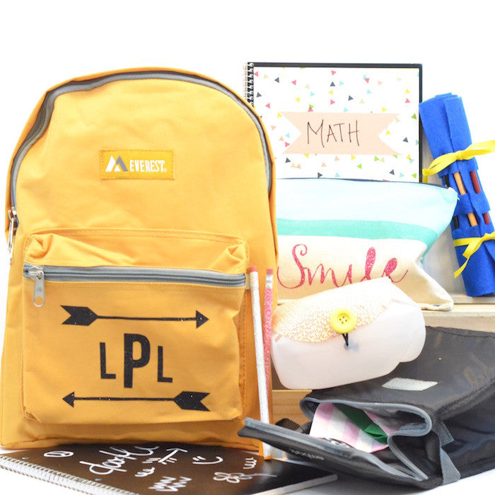 Backpacks can be very pricey. The backpack pictured is from Amazon and only cost $12.95 (comes in a variety of colors). I turned this simple backpack into a glittery monogrammed sensation using Vinyl Heat Transfer Sheets. I created a monogram design on Canva, used repositionable spray adhesive and secured it to the top of the vinyl heat transfer sheets. I cut the design out and removed the original design paper. Next I ironed on the heat transfer with the iron on a cotton setting. Once the design is stuck remove the clear top sheet. Boom.... you have a custom backpack!