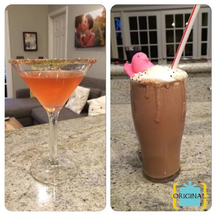 I thought it would be a fun to tryout my bartending skills and see what I could come up with. I call these the Beanie Martini and the Chocolate Peep Frozen Mudslide. Enjoy!