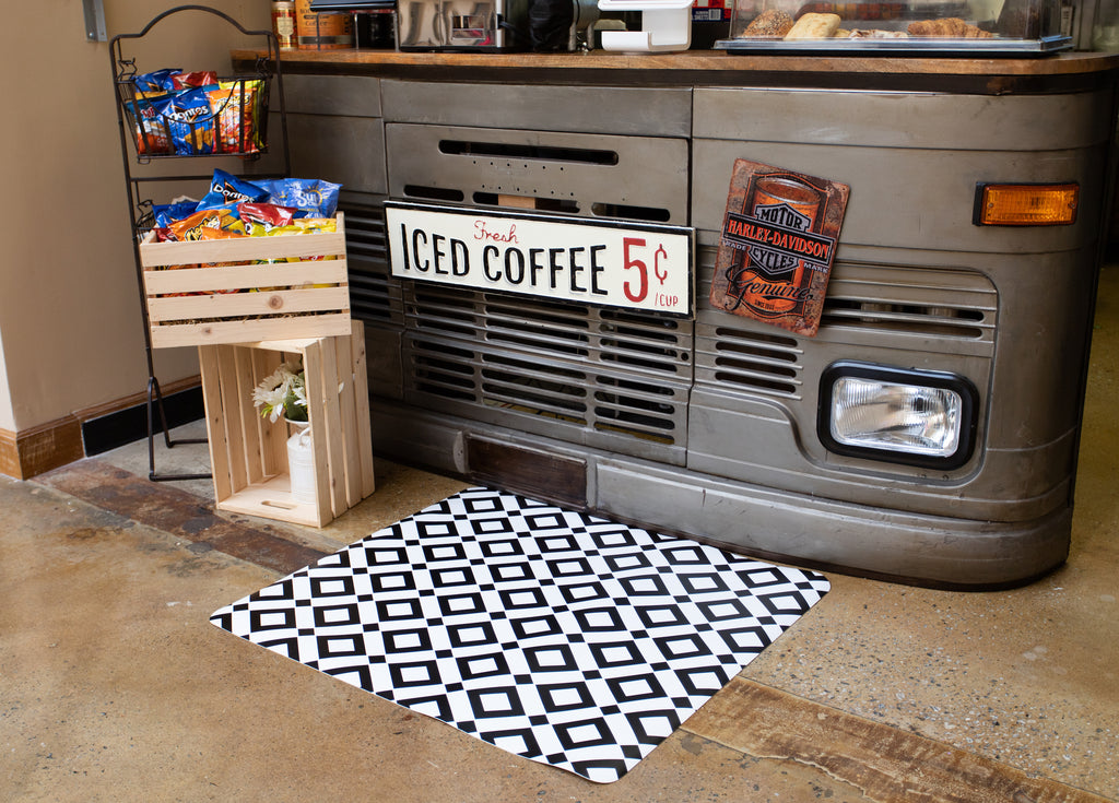 Deflecto Fashion Mats can be used in multiple ways for your small restaurant or bistro. Place a stylish mat in front of your bar area to help catch accidental drops of food when passing customers their orders. You can also place them beneath self-serve drink stations to protect the floor from spills and hot liquids.