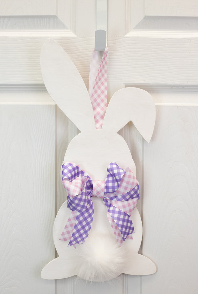 - Glue an extra piece of ribbon to the back of the bunny to make a hanger.