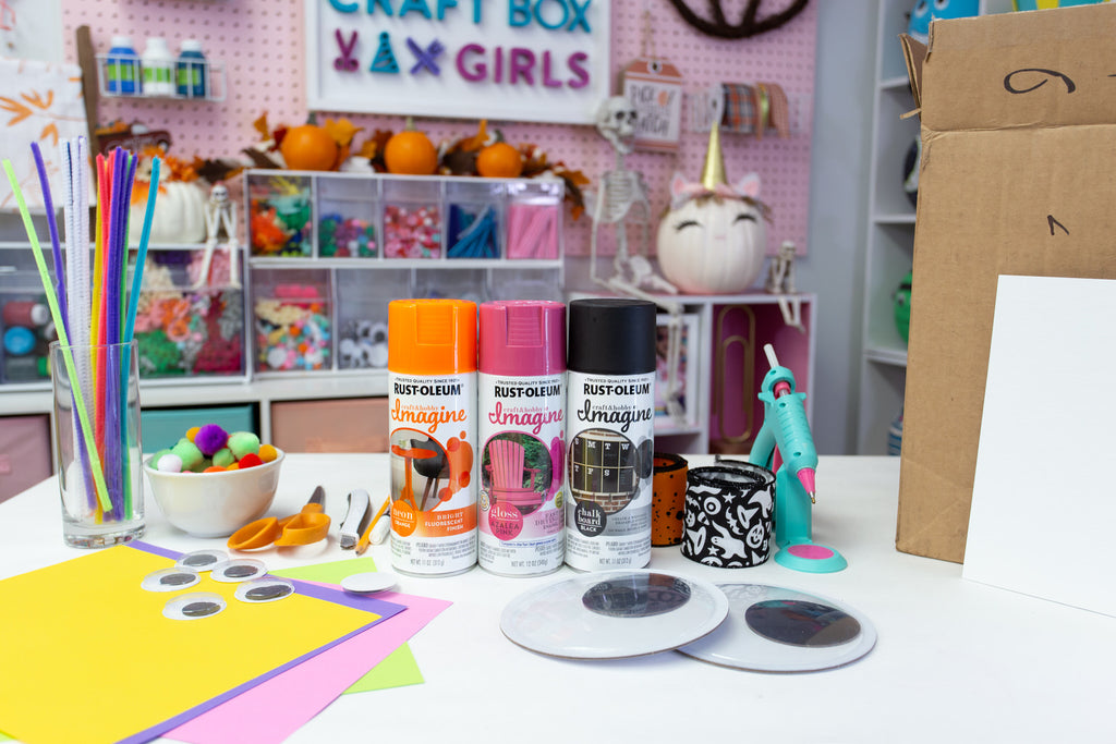My daughter got to play Halloween a little early and she loved the Monster Trick or Treat Boxes! I love how easy they were to make and decorate with Rust-Oleum Imagine Spray Paints!