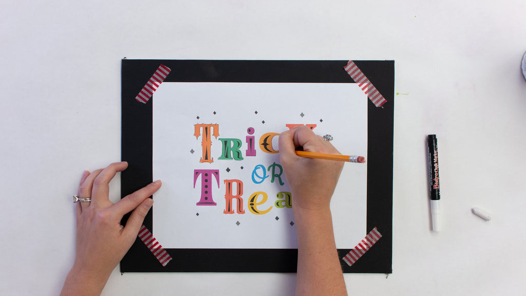 - Trace over the chalk with chalk marker. Let it dry. Once dry, shake off the dust.