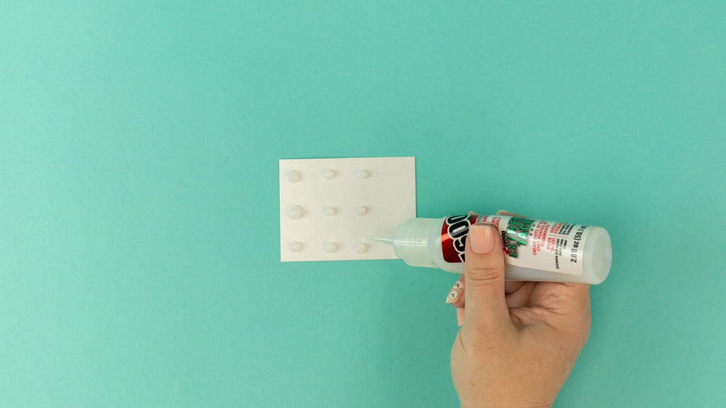 - Apply dots of your E6000 to your white paper. Allow to dry for 8 hours.