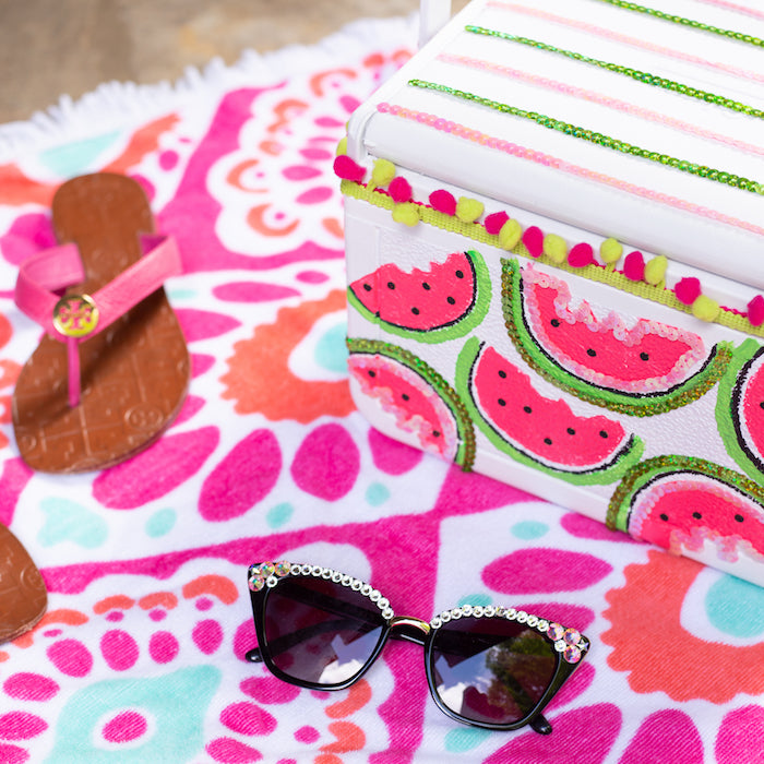 The trend of cooler decorating became popular with college students and has now become a fun way for all ages to share their creativity for Summer! Check out my first ever decorated cooler!