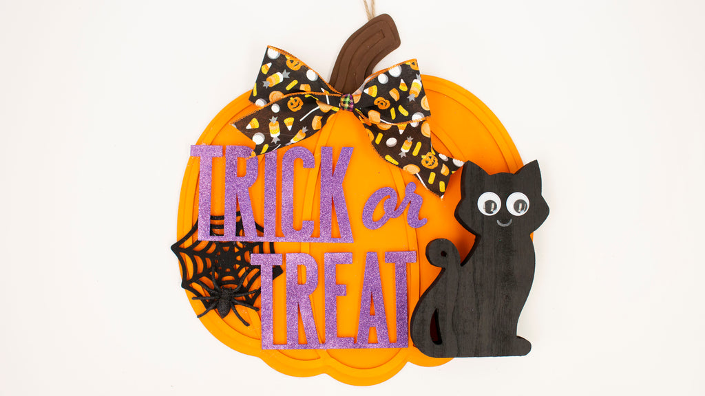 - Glue your trick or treat lettering to the middle of your pumpkin.