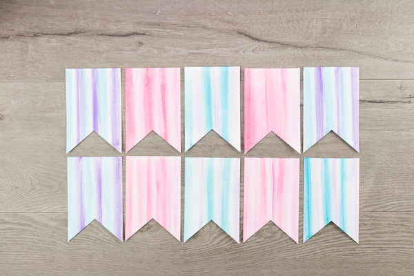 - Cut banner shaped pendants from the watercolor paper. Cut enough pendants to spell out your message.