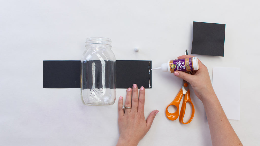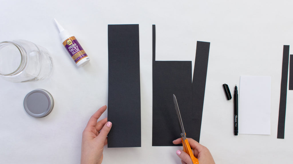 - Cut a piece of black paper to create a wrap around your jar. Adjust the width based on the size of the jar.