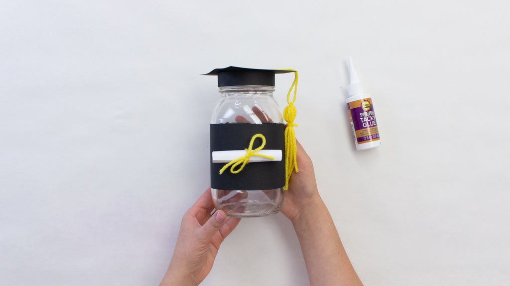 Graduation might look a little different again this year but that doesn't mean you can't make your grad feel special for an at home celebration. From kindergarten graduation to college these fun grad jar favors are sure to make the celebration a little more fun! I teamed up with Aleene's to show you how easy it is to create with Turbo Tacky Glue! It dries so fast and has a great strong hold on multiple surfaces.