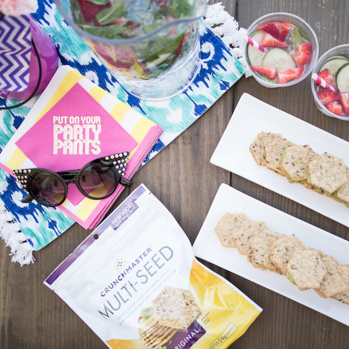 Happy Hour is a great excuse to let loose and enjoy a fun afternoon with your co-workers! Crunchmaster is the perfect snack to keep it simple, delicious and healthy! Over the course of the last months, I have hosted many picnics and I am confident I can now officially call myself a picnicmaster. If you missed my other picnics check out, Winter Picnic, Mommy & Me Picnic and Spring Picnic.