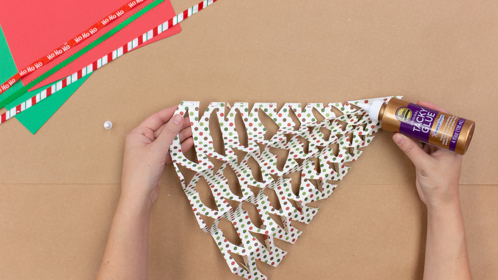 - Use the Aleene's Original Tacky Glue to glue the edges together to form the tree. It will stand up on its own.