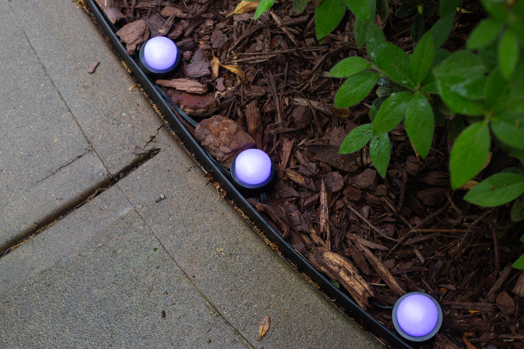 I love the Enbrighten Landscape Lights for just the right amount of pizzaz for our entry landscape. They are available in multiple lengths, stake into the ground easily and just like the cafe lights they light up in 120 different color options with the remote.