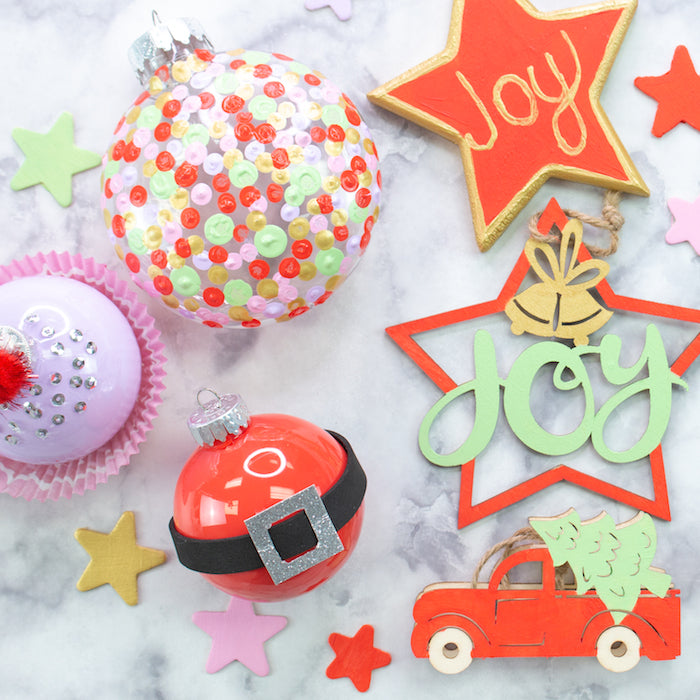 Decorating a Christmas tree with your family can be so much fun! What makes it even more fun is getting the kids involved with making the ornaments. I am loving Martha Stewarts new Family Friendly Multi-Surface Acrylic Paint Line because it is safe for the whole family even the littlest crafters. It is also multi-surface and works on wood, glass, fabric and so many more surfaces!
