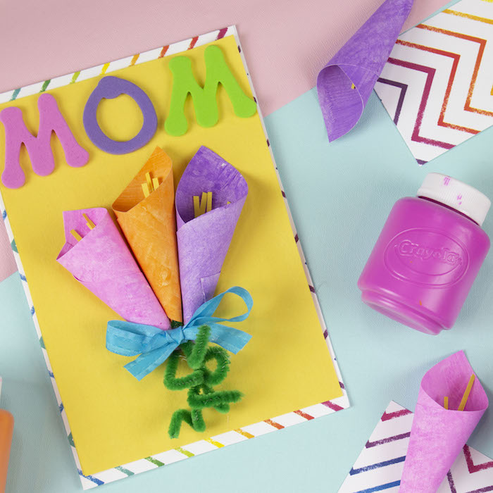 - Make a bouquet of flowers or add a group of three flowers to the front of a card for mom or a friend!