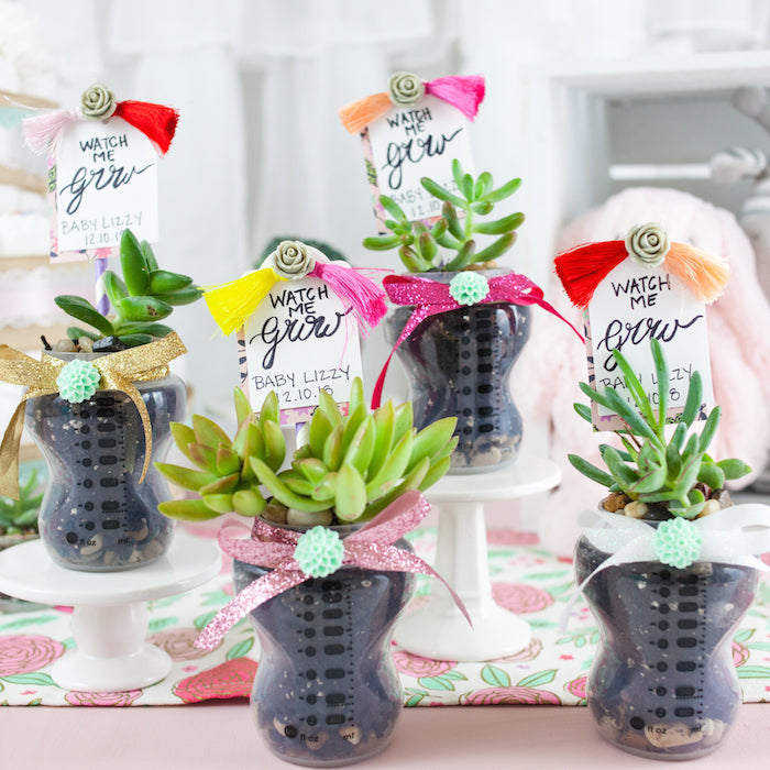 Planning baby showers for my friends is one of my favorite things to do! Combine that with my love for succulents and you have these beautiful baby shower favors! PS- My new favorite place to get succulents is The Succulent Source, they have a beautiful selection and are shipped directly to your door!