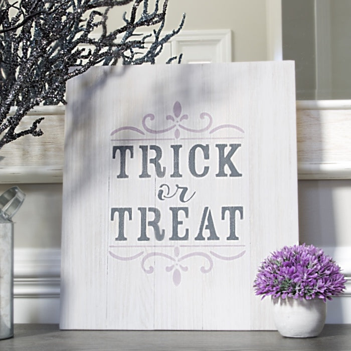 Do you ever want to decorate for a certain season but the colors don’t necessarily match your home décor? Well, my friends, I have a solution for that! Don’t let your seasonal décor stick out like a sore thumb ever again by learning how to create custom seasonal signs! Let’s start with a Vintage Trick or Treat sign with a shabby chic twist!