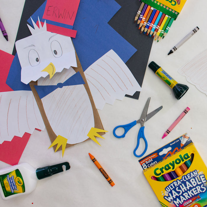 To celebrate July 4th this weekend we turned a paper bag into a patriotic eagle puppet on our live zoom crafting event today.