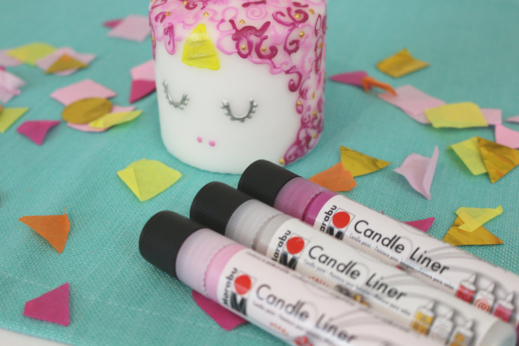 Every year I am wowed by new and innovative products and this year Marabu's Candle Liners were on the top of my list for the coolest new product! Candle Liners allow you to embellish candles in countless ways! The creative possibilities are endless. Hope and I created a few simple pieces but are excited to try out more intricate designs in the coming weeks!