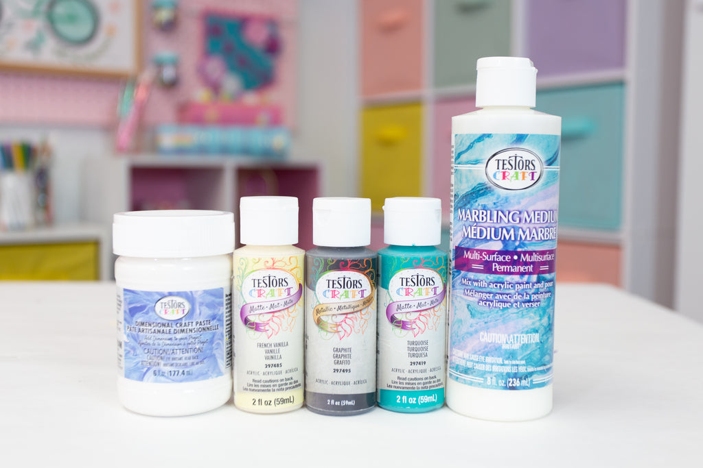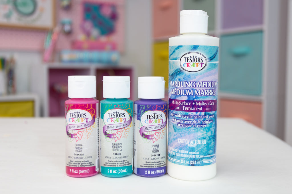 I am continuing my series with Testors and sharing 3 paint pouring techniques featuring Testors Acrylic Paint and....drumroll..... Testors Marbling Medium! Testors Marbling Medium is the best paint pouring tool to ensure you get a perfect project every time!