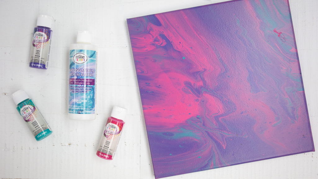 I love how Testors Marbling Medium makes paint pouring a cinch! It is so fun to see how each canvas turned out differently!