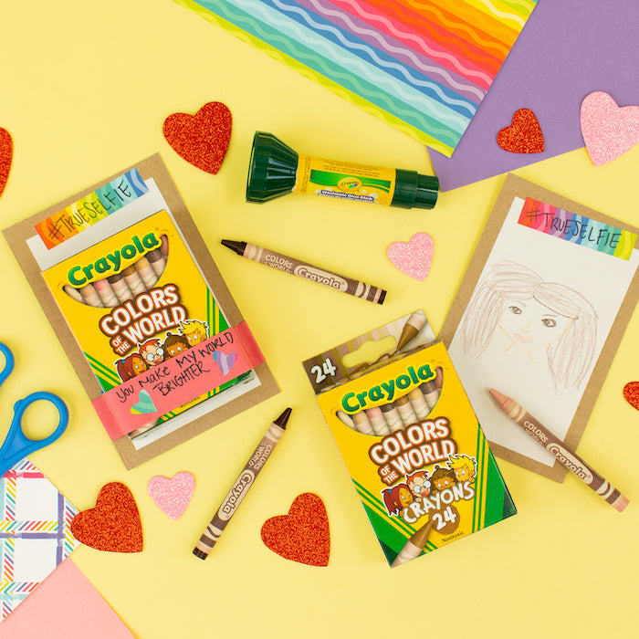 We love the Crayola Colors of the World Crayons and if I had not already sent in sets to my daughter's class earlier this year I would have totally have done this as her Valentine's Day favors.