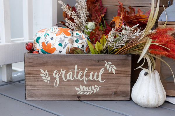 Anywhere you see color in these projects you will see the magical Unicorn SPiT gel stain! I love the versatility of this product. You can use it as a stain to stain wood like I did in the garden box below or use it like a bold rick craft paint to paint a floral pattern on pumpkins!