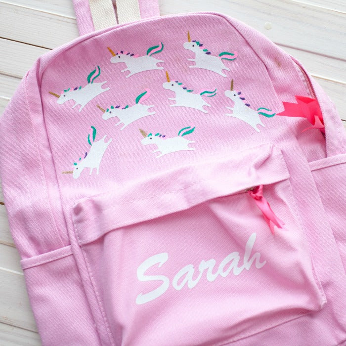 2. Layout the unicorns on the book bag before ironing on. Make sure the images are spaced out equally.