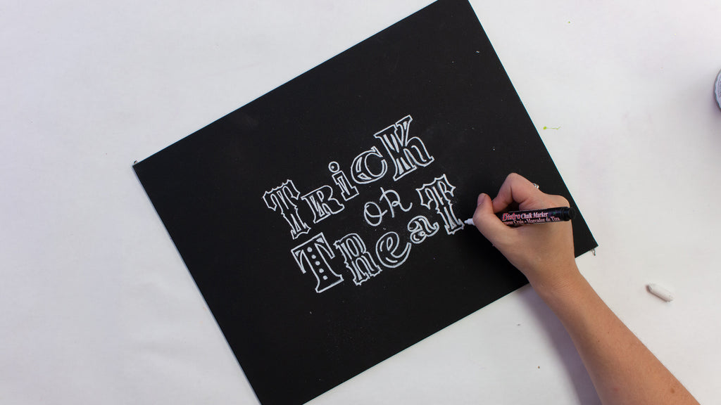 - Trace over the chalk with chalk marker. Let it dry. Once dry, shake off the dust.