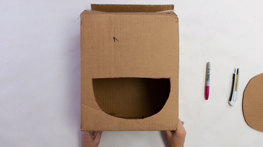 - Draw mouths on the boxes and cut out with a craft knife. Make the openings large enough for a child's hand to fit through and grab candy.