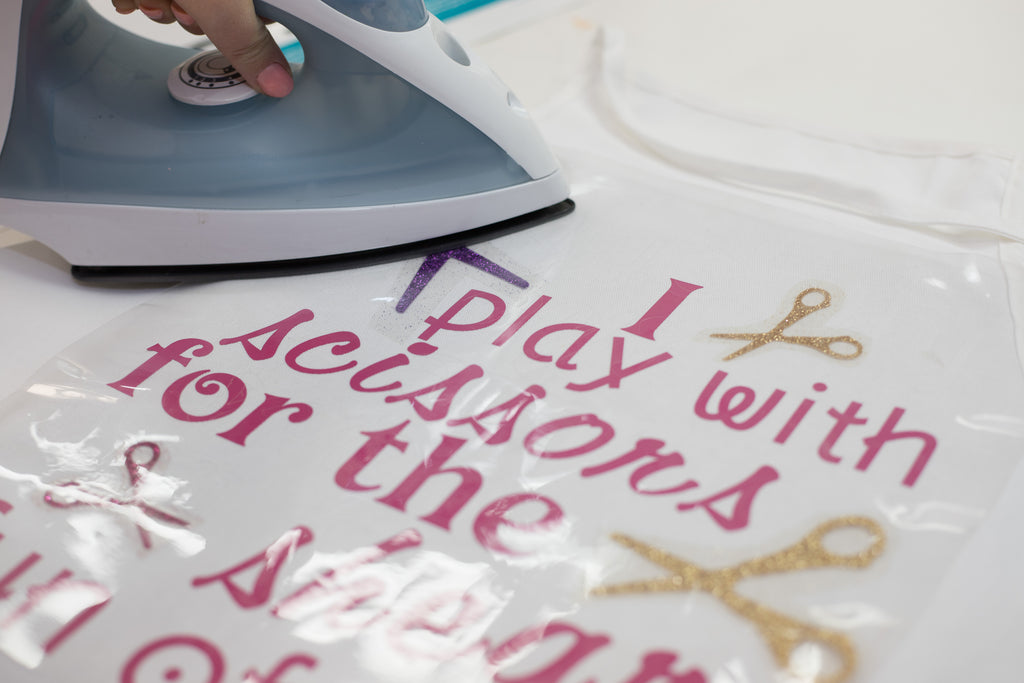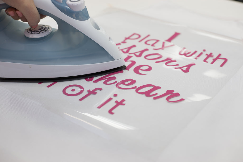 - Next, warm up the apron by running the iron over it for 5-10 seconds. Check the vinyl package for recommended heat settings based on the fabric you are ironing.