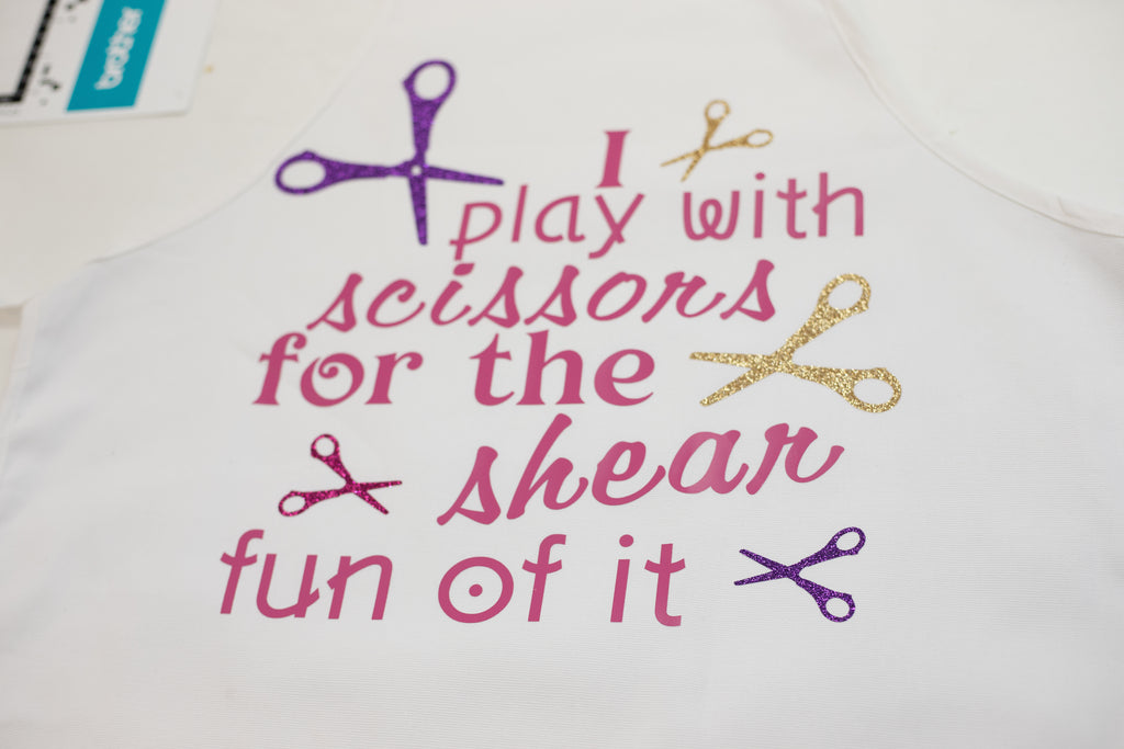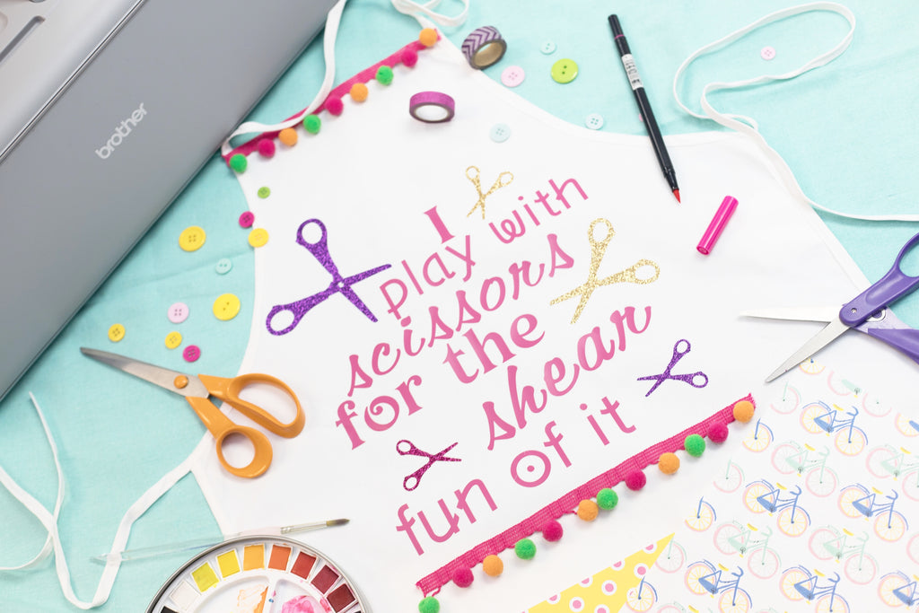 I have always loved a good apron. From the kitchen to the craft room a festive apron makes crafting and cooking just a little more fun! My new ScanNCut DX is the perfect tool to create a fun apron. Because I have a bunch of aprons for cooking, I thought it was time to have a festive crafting apron! The best part about this project is that it is "shear" fun and you can make in under 30 minutes!