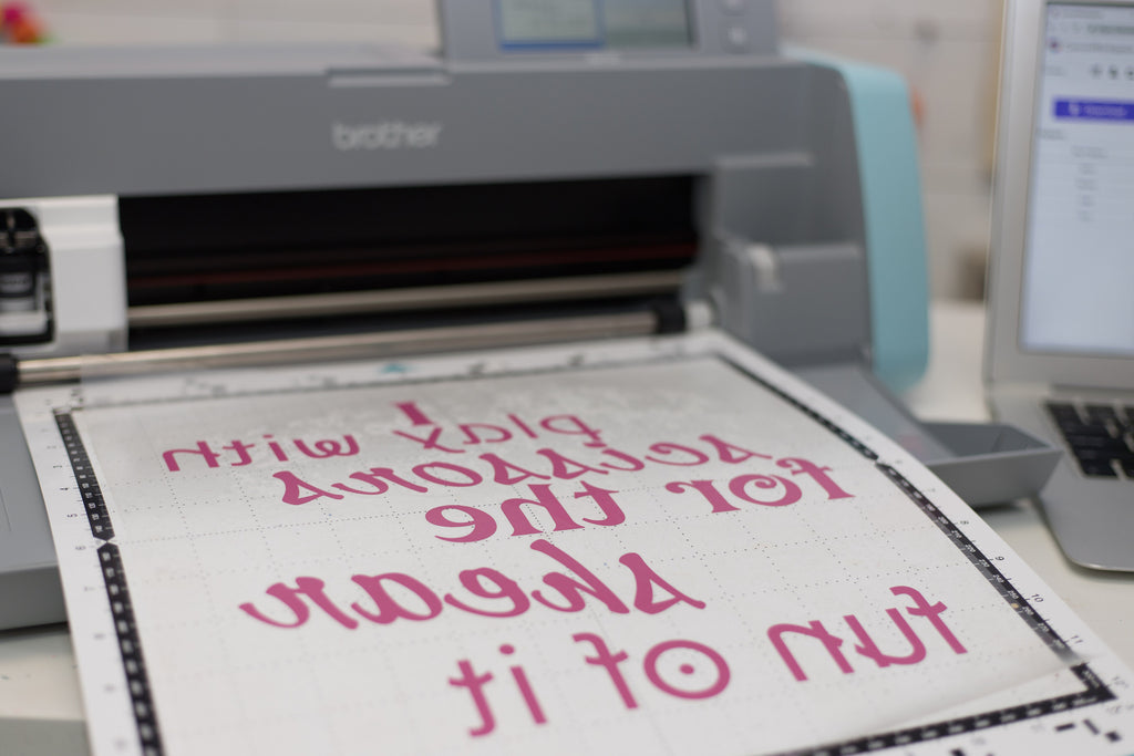 - I cut the words on pink HTV vinyl and weeded away the excess vinyl.