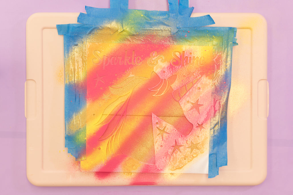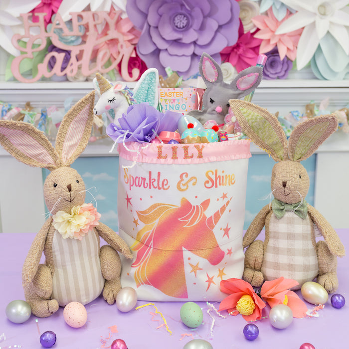 This year I turned an extra tote bag that I had into a sparkly magical unicorn Easter basket with the help of Testors Craft Fabric Spray Paint. I think the Easter bunny will be excited to fill this basket!