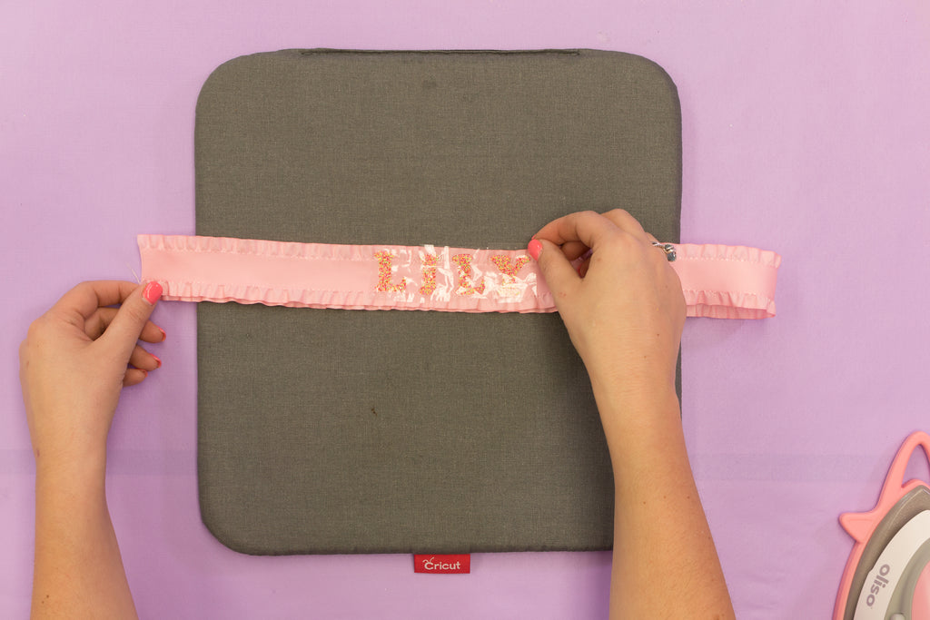 - You could stop there but I am a little extra so I went one step further to personalize the toe! I was using ribbon that was thicker than my iron-on letters so I decided to iron them on the ribbon.