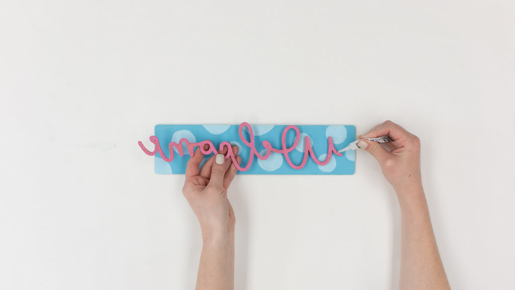- Paint the welcome sign with Colorshot Farmer’s Daughter. Set aside to dry.