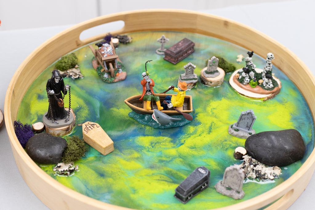 As I get ready to decorate for Halloween I am creating some fun DIY displays for my favorite Lemax Collectors Club Spooky Town collectibles. Today I am sharing how easy it is to make a spooky pond to display your Lemax accessories alongside the smoking Skull Cave Quarry.