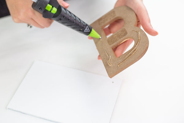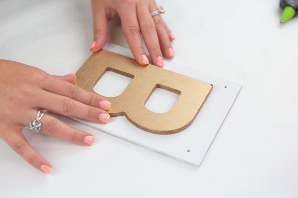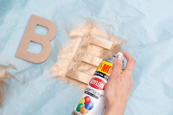 - I sprayed the wood rectangles with Gloss White, the "BE" in Metallic Gold, the "My" in Gloss Ballet Slipper and "Galentine" in Gloss Mambo Pink. These need a light second coat. I waited about 20 minutes in between coats.
