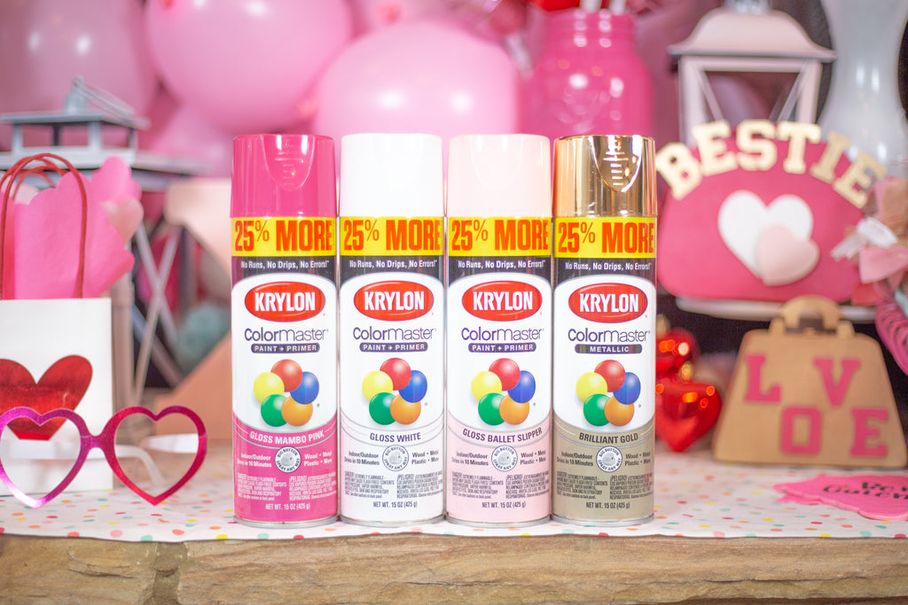 Valentine's Day is not just for love birds but also an excuse to celebrate your besties. Galentine's Day is one of my favorite holidays. Every year I gather my girls for an afternoon of sweet treats, crafts, and fun! This year I worked with Krylon® Brand to create a sweet Galentine's Day party banner and decorations. I used wood letters and rectangular wood pieces to create the banner. I also gathered decor I had around the studio and the house that I could upcycle with a fresh coat of spray paint. Scroll down for tips, material and a look at all the decor pieces.