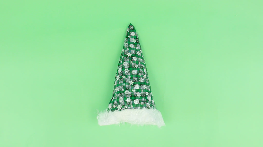 - To create the hat, cut 2 identical triangles from the fat quarters of fabric. Make sure to make the triangles tall enough so that the gnome’s hat has enough room to bend over.