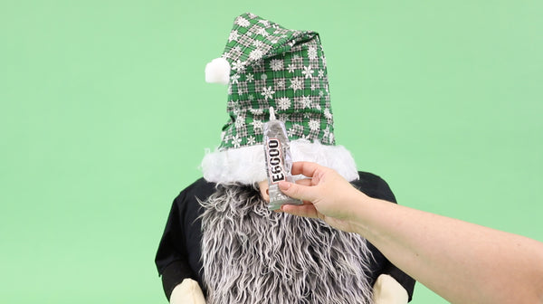 - Place the hat on the gnome. Position it partially over the nose. Make sure that the edge of the hat touches the beard on both sides of the nose. No pillow or neck of the shirt should be showing. Glue hat in place.