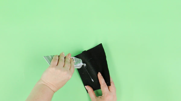 - Turn the fabric inside out and glue two edges together, leaving the bottom edge open. Allow glue to dry.