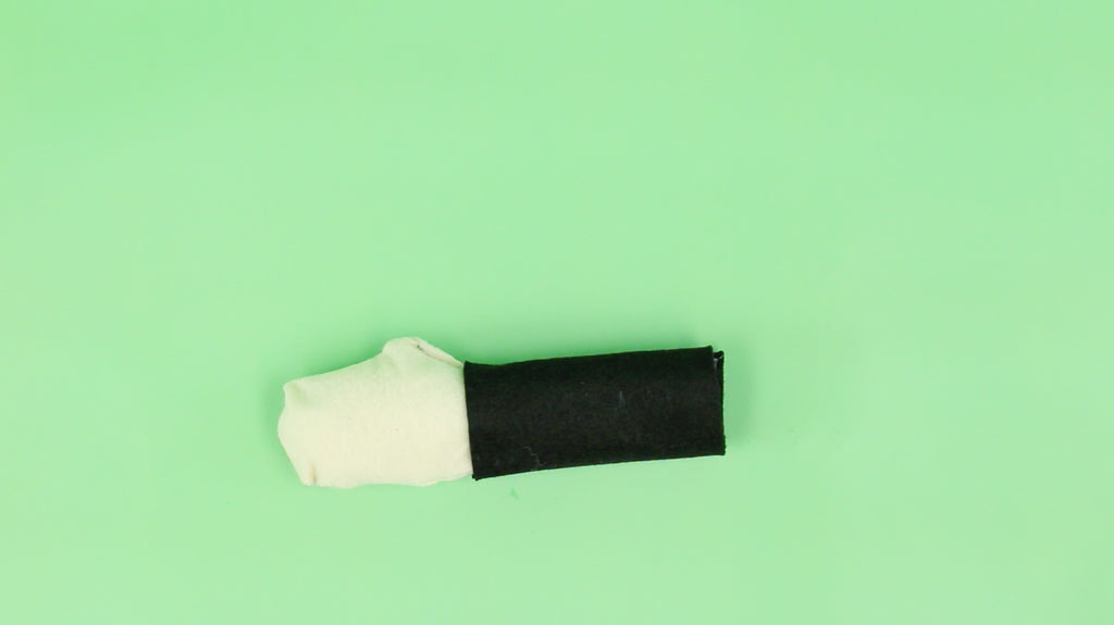 - Cut 2 pieces of black felt and roll into cylinder shapes to make the arms.