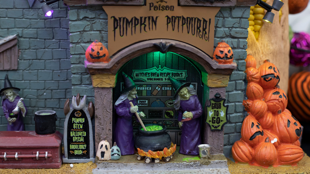 - Leave some potpourri in the bowl to add to your Lemax Poison Pumpkin Potpourri Village.