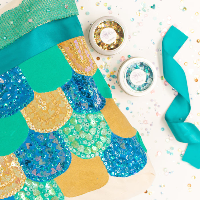 Our entire team, my daughter and basically everyone I know loves mermaids. They are up there for me with my favorite mythical creators and inspiration animals. So why not create a magical pillow to keep that mermaid love alive through winter! When we were brainstorming ideas for making a mermaid-inspired pillow we wanted to use something that most people would have at home as a starting point. I figured most people have a tote bag that they are not using. Maybe it was from an event or your kid's school. With a little help from Buttons Galore and More fun sequins and embellishments, you can turn it into a mermaid-inspired pillow.