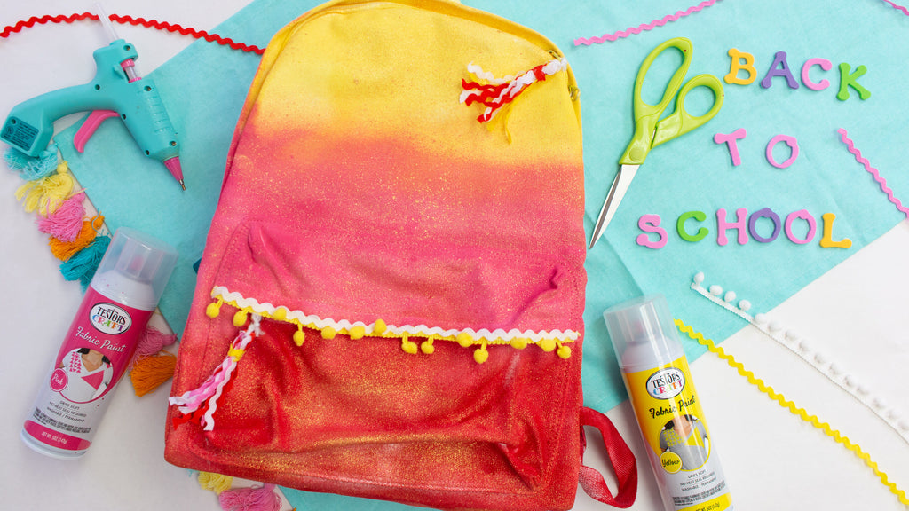 Back to school is almost here. For some areas the kiddos are heading back this week or might have already started. My daughter's pre-school starts on August 11 so we are gearing up with school supplies and creating fun crafts to get her excited. I am excited to team up with Testors Craft to celebrate back to school with a colorful ombre backpack design. Today I am using the Testors Craft Fabric Spray Paint to easily create this fun colorful effect.