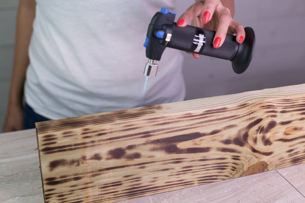 - Lightly glide the Bernzomatic ST2200T Detail Torch across the wood, burning and highlighting the grains in the wood.