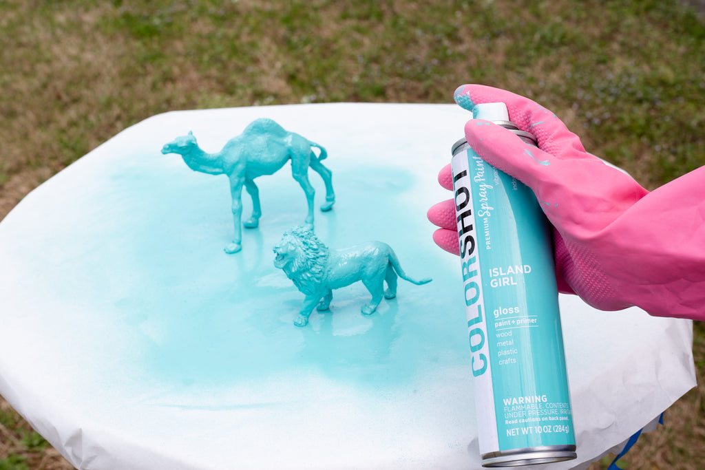 - Spray paint your animals in a variety of colors. Let them dry.
