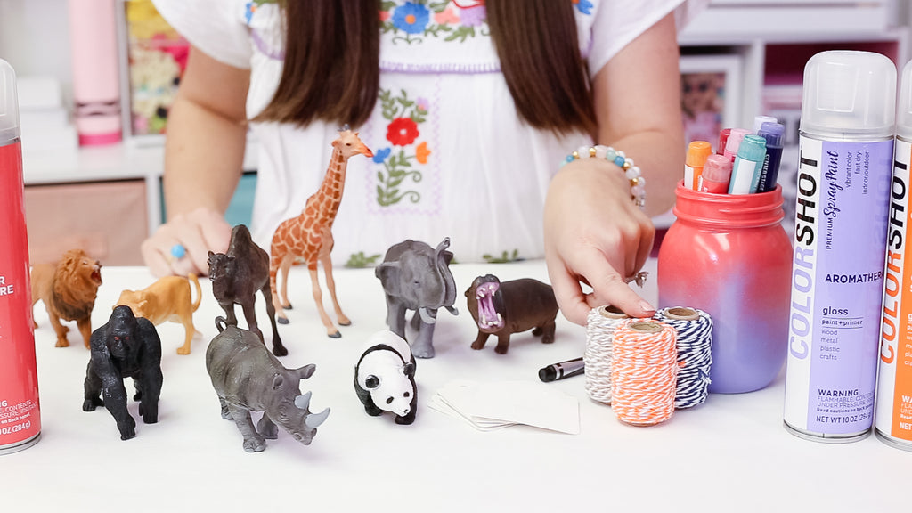 Parties are my jam. I love creating over-the-top celebrations for my kiddos and giving them experiences and our guest's experiences they will never forget. Today I am partnering with COLORSHOT to create colorful bright toy animal party favors! We are creating an adopt an animal party favors.