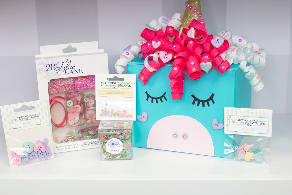 Shop a special deal on a bundle of all the embellishments we used: https://buttonsgaloreandmore.com/products/unicorn-keepsake-box-bundle